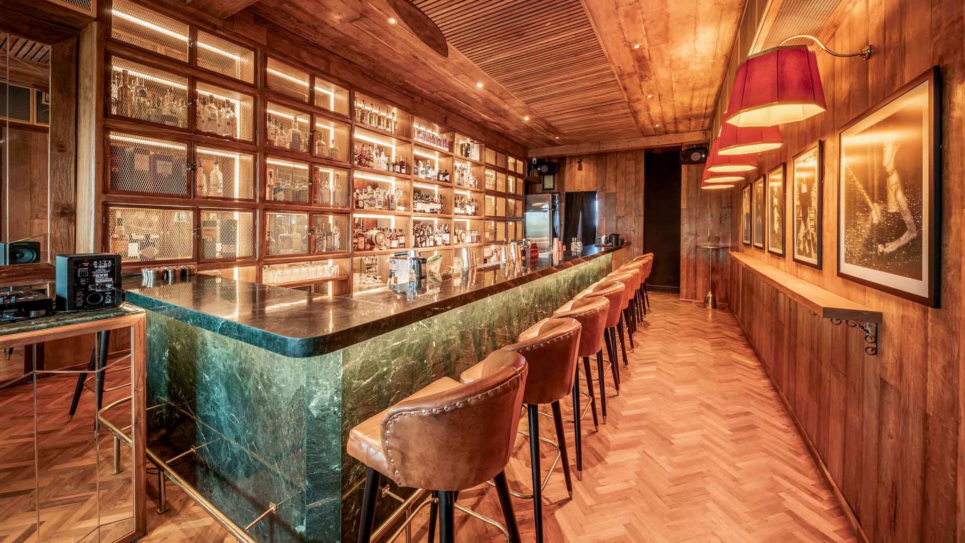 UPSTAIRS BAR Hidden behind an unassuming facade in the heart of the action of Canggu, Bali, lies a speakeasy that offers premium bottles and cocktails in a clandestine setting. As you step through the secret entrance, you are transported to a world of glamour and sophistication. The dimly lit lounge is bathed in warm amber hues, and the air is filled with the sounds of jazz and laughter.